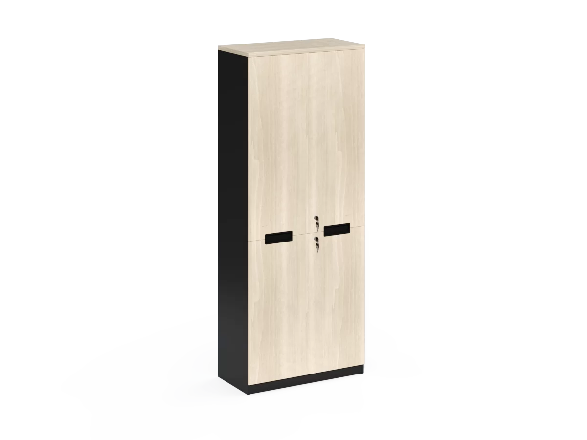 Fabricada en melamina de alta calidad con cantos en PVC de 2 mm, incluye dos módulos con puertas batientes independientes, cada uno con su propia cerradura para resguardar el contenido de forma segura. Las manillas metálicas aportan un acabado moderno y funcional.