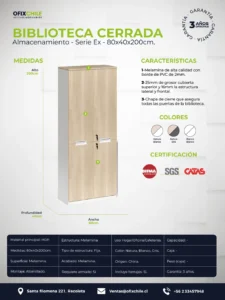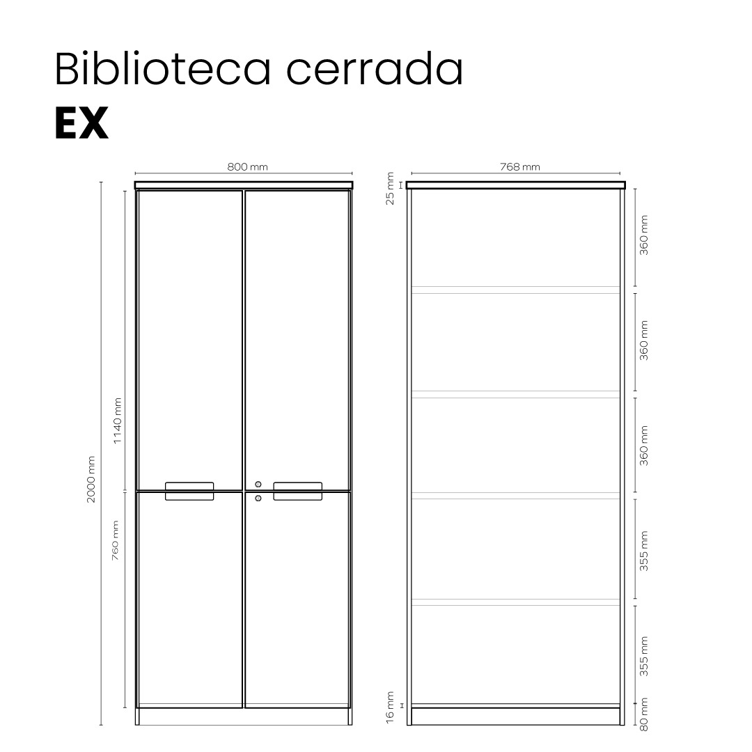 La Biblioteca EX Cerrada está diseñada para ofrecer almacenamiento seguro, discreto y estructurado en ambientes corporativos. Su formato completamente cerrado permite guardar documentos, insumos o materiales fuera de la vista, manteniendo el entorno visualmente limpio y profesional.