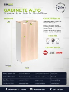 El Gabinete Alto EX de 2 puertas está diseñado para ofrecer una solución de almacenamiento vertical y de alta capacidad en oficinas corporativas, estaciones de trabajo o salas de archivo. Su diseño cerrado permite mantener la privacidad y el orden visual en espacios profesionales.