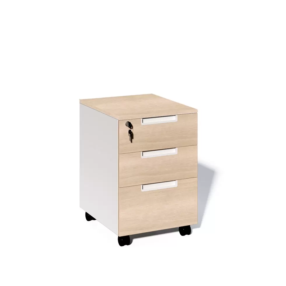 Cajonera móvil 3 cajones con llave: Almacenamiento seguro y accesible, con ruedas que incluyen freno para mayor estabilidad.
