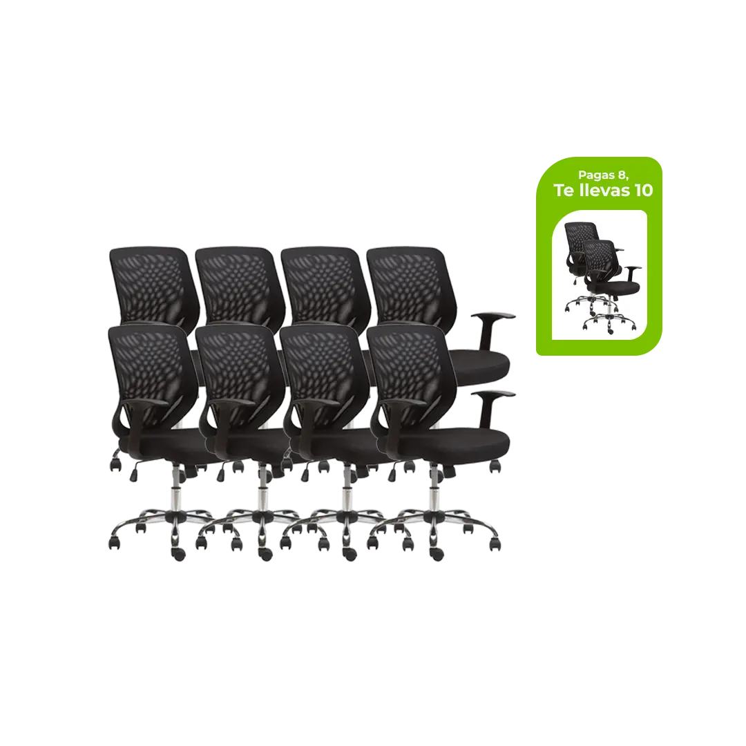 Al pagar 8 unidades, recibes 10 sillas Bend, un modelo operativo práctico y resistente que destaca por su diseño compacto y funcional.