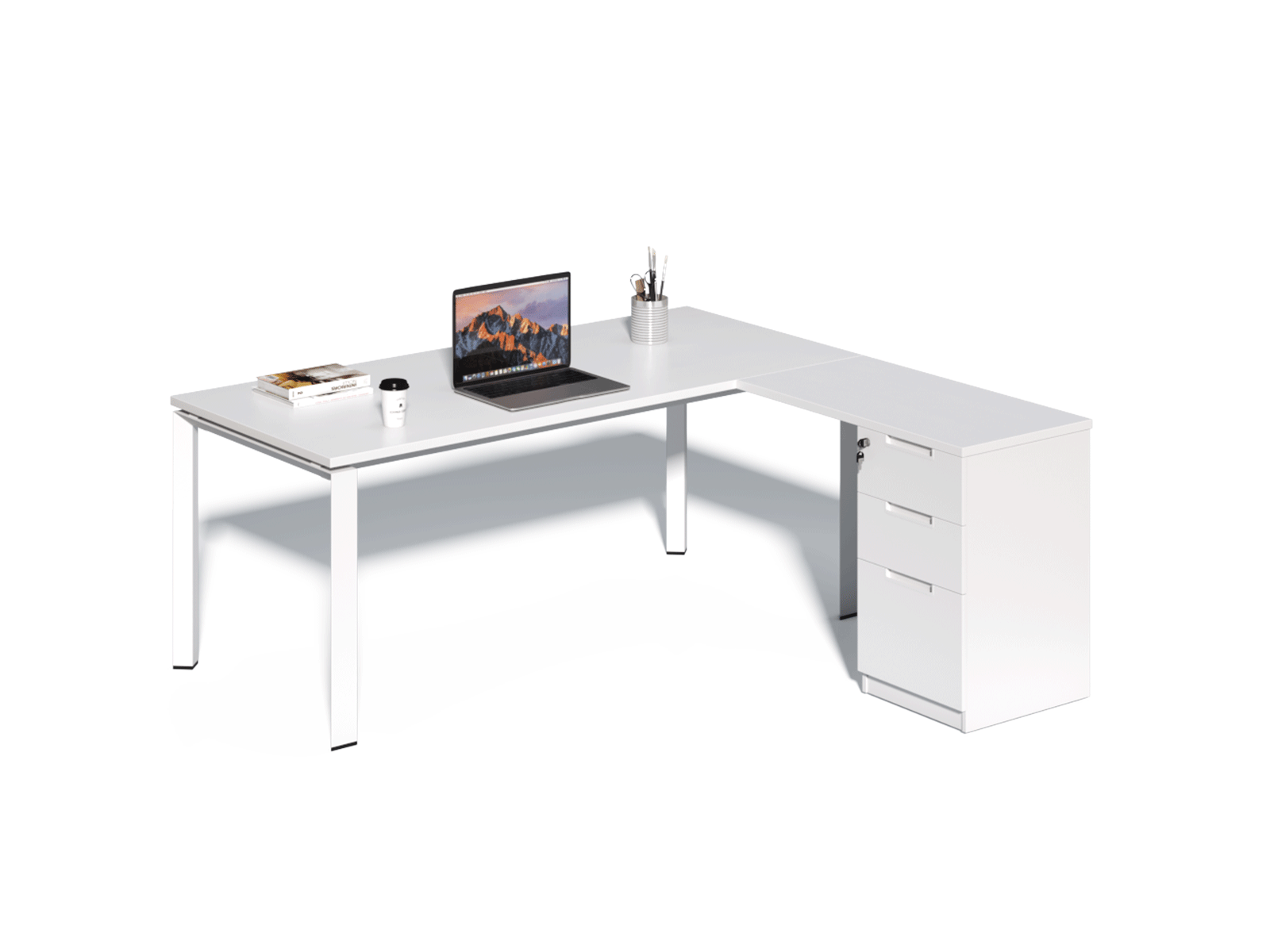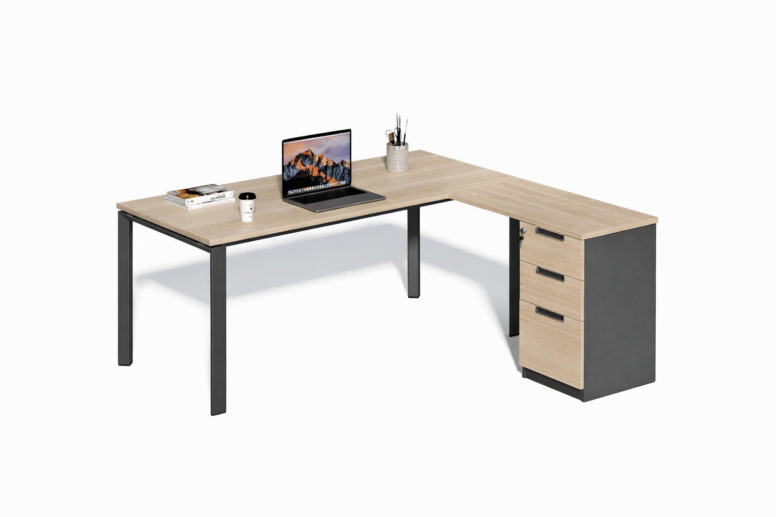 Escritorio ejecutivo de diseño moderno con retorno lateral de 50×70 cm, ideal para ampliar el espacio de trabajo. Fabricado con cubierta de melamina de 25 mm que entrega gran resistencia y durabilidad, combinado con patas metálicas de perfil 55×55 mm que aportan estabilidad y una estética contemporánea. Perfecto para oficinas que buscan funcionalidad, amplitud y estilo en un solo mobiliario.