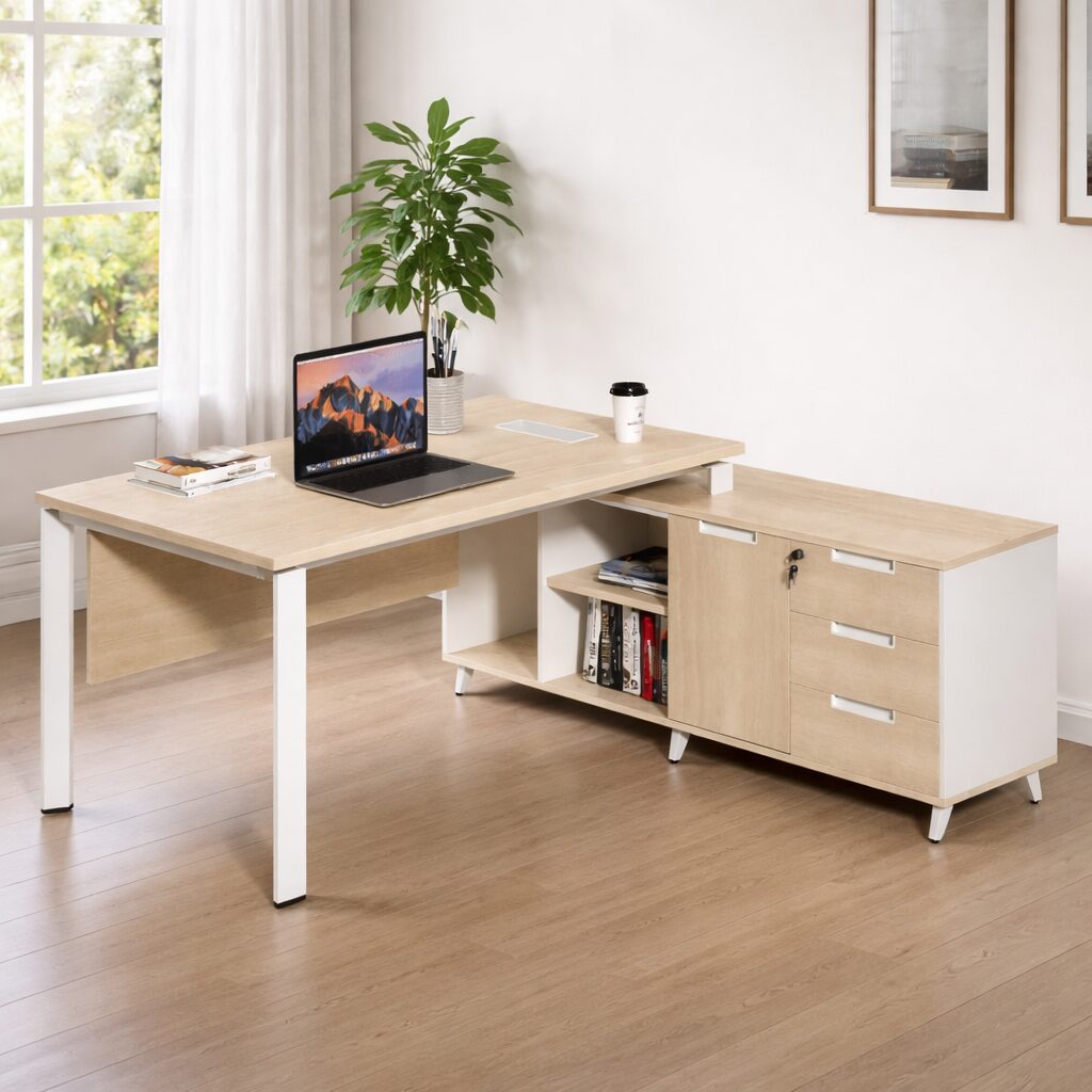 Es la opción ideal para estaciones de dirección, oficinas gerenciales o puestos técnicos que requieren organización, presencia profesional y uso intensivo del espacio.