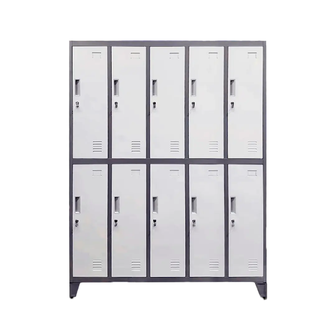 Cuenta con 10 compartimientos independientes, cada uno equipado con ventilación y sistema porta candado para mayor seguridad.