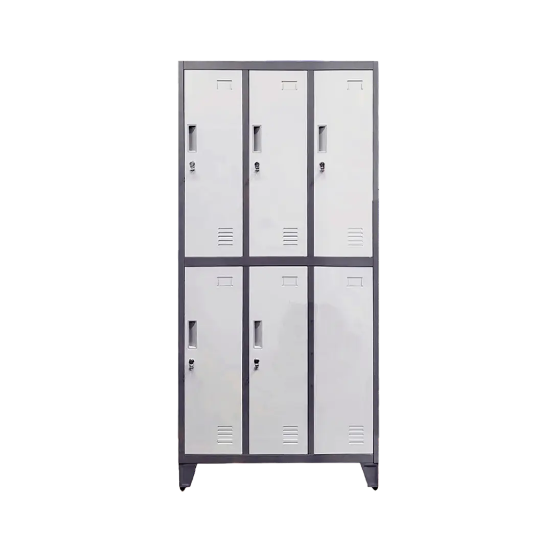Dispone de 6 puertas independientes, cada una con ventilación integrada y sistema porta candado, facilitando la organización de pertenencias personales.