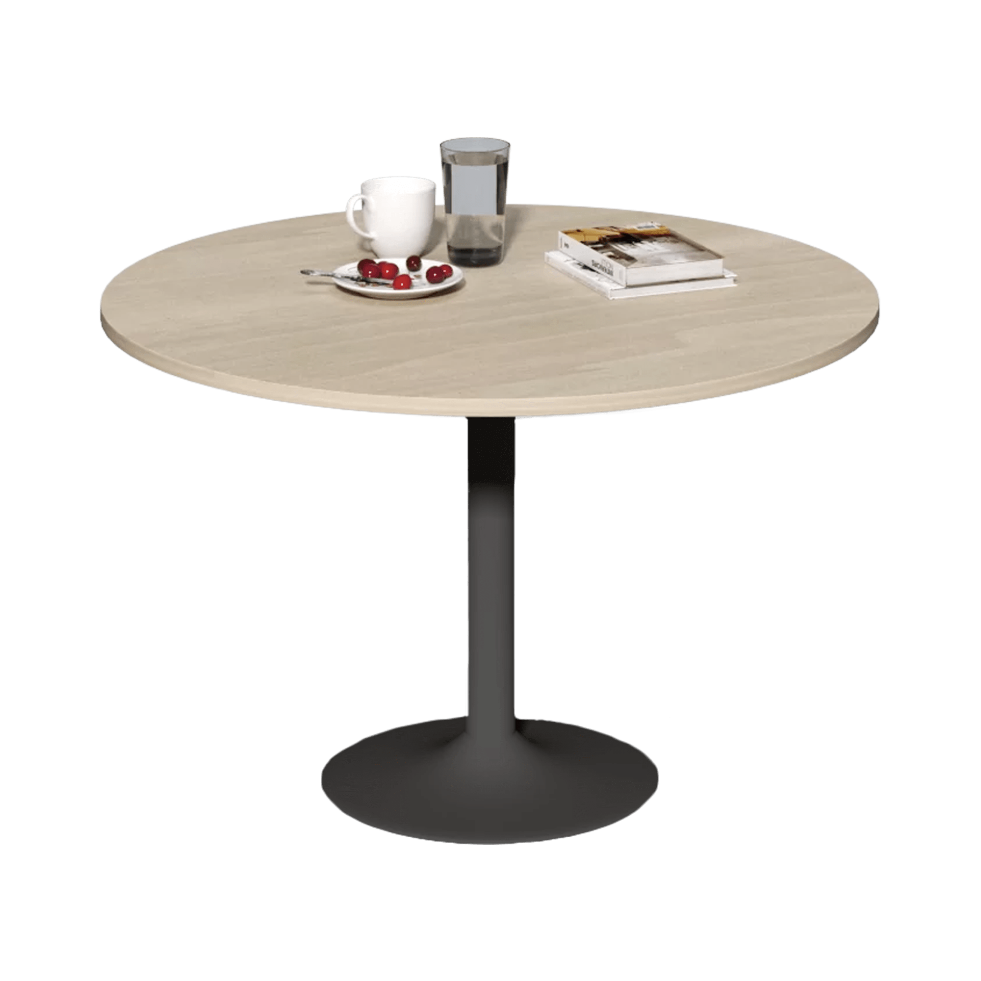 Cuenta con una cubierta de 25 mm de espesor en melamina de alta calidad, diseñada para resistir el uso continuo sin pandeo. Su estructura incluye una columna central estilizada con una pesa inferior anticaídas que refuerza la estabilidad, incluso con uso frecuente.
