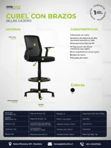 Cubel con Brazos es una silla cajero diseñada para aportar soporte ergonómico, resistencia y estética profesional en estaciones de trabajo elevadas. Pensada para cajas, puntos de control o estaciones técnicas, combina estructura firme con asiento y respaldo tapizados.