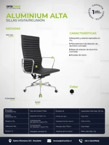 Aluminium Alta – Cuero es una silla de visita ejecutiva diseñada para aportar confort elevado, presencia formal y resistencia en salas de reunión o escritorios de atención. Pensada para ambientes corporativos de alto estándar, combina tapizado premium y estructura reforzada.