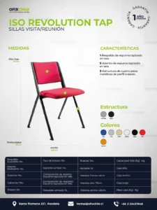 ISO Revolution Tap es una silla de visita diseñada para aportar soporte básico, resistencia estructural y funcionalidad práctica en espacios formativos o institucionales. Pensada para aulas, auditorios o zonas de capacitación, combina estructura metálica con tapizado en asiento.