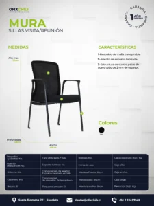 Mura es una silla de visita diseñada para ofrecer una solución práctica, resistente y visualmente equilibrada en espacios de atención, zonas de reunión o escritorios secundarios. Pensada para entornos corporativos o institucionales, combina estructura metálica firme con líneas limpias.