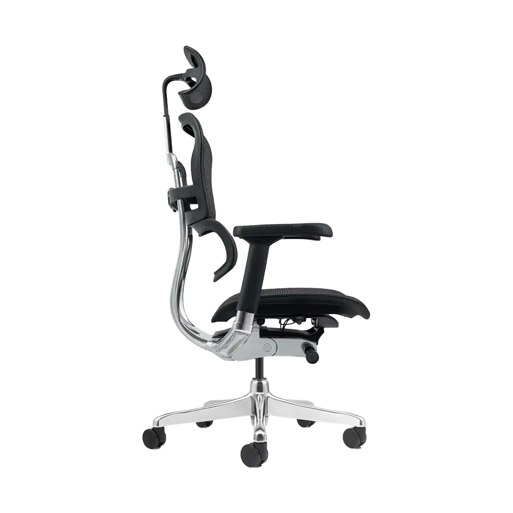 Equipada con respaldo alto en malla técnica de triple panel, incluye soporte lumbar ajustable en altura y profundidad, garantizando alineación dinámica y continua durante toda la jornada. El asiento deslizante permite ajustar la profundidad para adaptarse a distintas tallas de usuario, mientras que el cabecero regulable proporciona un apoyo cervical preciso. Sus brazos 5D se ajustan en altura, ángulo, apertura, profundidad y desplazamiento lateral, favoreciendo una postura ergonómica completa. Incorpora un mecanismo sincrónico multiposición, fluido y confiable, que permite reclinar el respaldo con bloqueo en distintos ángulos. La base es de aluminio pulido de alta resistencia, equipada con ruedas silenciosas aptas para pisos duros o alfombrados.