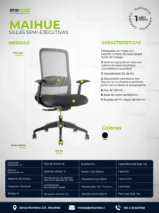 Maihue es una silla semi ejecutiva diseñada para ofrecer equilibrio entre confort y diseño contemporáneo en espacios de oficina moderna. Pensada para escritorios operativos o áreas de atención, aporta una experiencia ergonómica básica con una estética sobria.