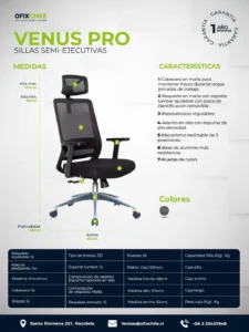 Venus es una silla semi ejecutiva diseñada para aportar soporte ergonómico y presencia profesional en entornos corporativos que valoran funcionalidad y diseño sobrio. Ideal para estaciones administrativas, escritorios secundarios o espacios de atención continua.