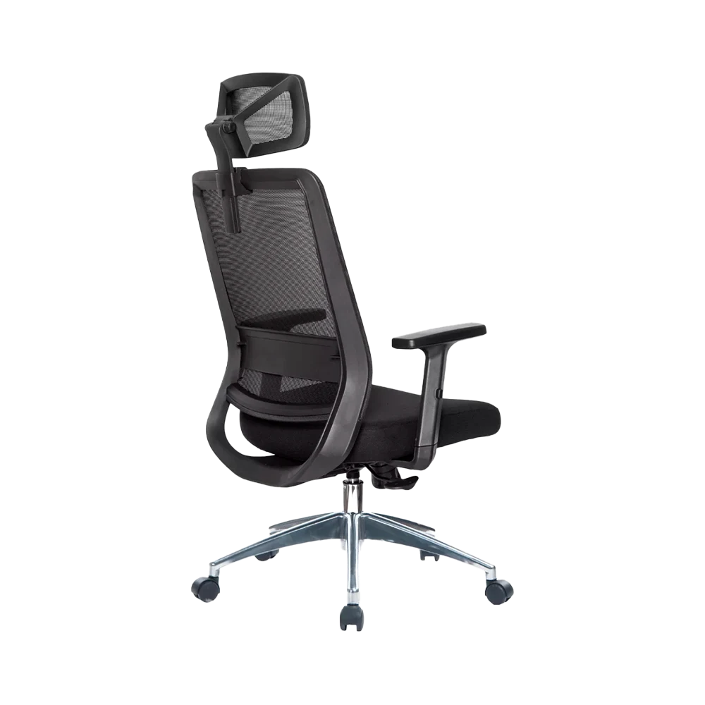 Equipada con respaldo medio en malla negra reclinable que favorece la ventilación, cuenta con soporte lumbar fijo para mejorar la alineación postural. El asiento tapizado con espuma de alta densidad brinda confort prolongado. Su base giratoria con ruedas facilita la movilidad, mientras que los brazos regulables en altura permiten una configuración ergonómica más precisa. Incluye cabecero, lo que la convierte en una opción completa y versátil para espacios de trabajo activos.