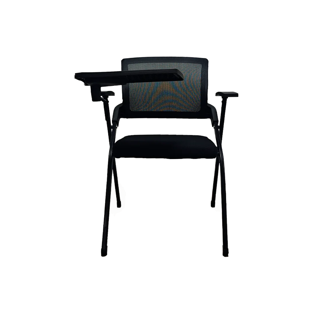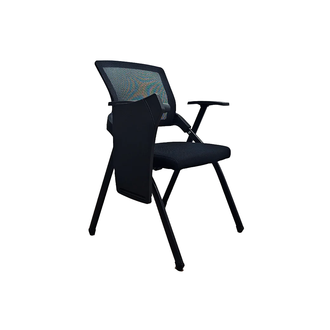 Incorpora respaldo de malla que permite una mejor ventilación y confort durante el uso prolongado, junto a un asiento de espuma tapizada en tela que brinda una experiencia cómoda y estable. Su estructura metálica de cuatro patas aporta solidez y equilibrio, ideal para entornos de alto tránsito. Además, cuenta con paleta abatible integrada, perfecta para tomar apuntes o apoyar dispositivos, optimizando el espacio de trabajo de cada usuario.