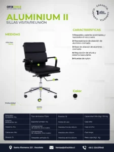 Aluminium II es una silla de visita diseñada para aportar presencia profesional y confort estructurado en salas de reunión, recepciones o escritorios de atención. Su estructura metálica pulida y tapizado en ecocuero garantizan una experiencia de asiento estable y estética ejecutiva.