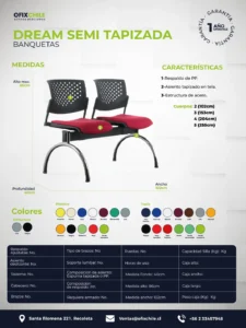 La Banqueta Semi Tapizada Dream ofrece un equilibrio visual y funcional entre robustez y suavidad. Su asiento acolchado aporta un nivel de confort adicional, mientras que su base y respaldo en materiales resistentes garantizan longevidad y estilo. Pensada para salas de espera que buscan transmitir cercanía sin dejar de lado la practicidad del mobiliario profesional.