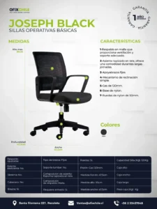 Joseph Black es una silla operativa diseñada para aportar funcionalidad práctica con un acabado más sobrio y elegante. Su estructura negra y líneas limpias la convierten en una opción versátil para oficinas modernas y espacios colaborativos.
