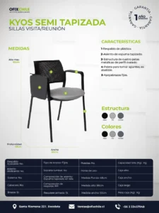 Kyos Semi Tapizada es una silla universitaria diseñada para combinar resistencia estructural, ligereza visual y confort adicional en aulas o auditorios. Pensada para espacios educativos de uso intensivo, combina respaldo en polipropileno con asiento tapizado.